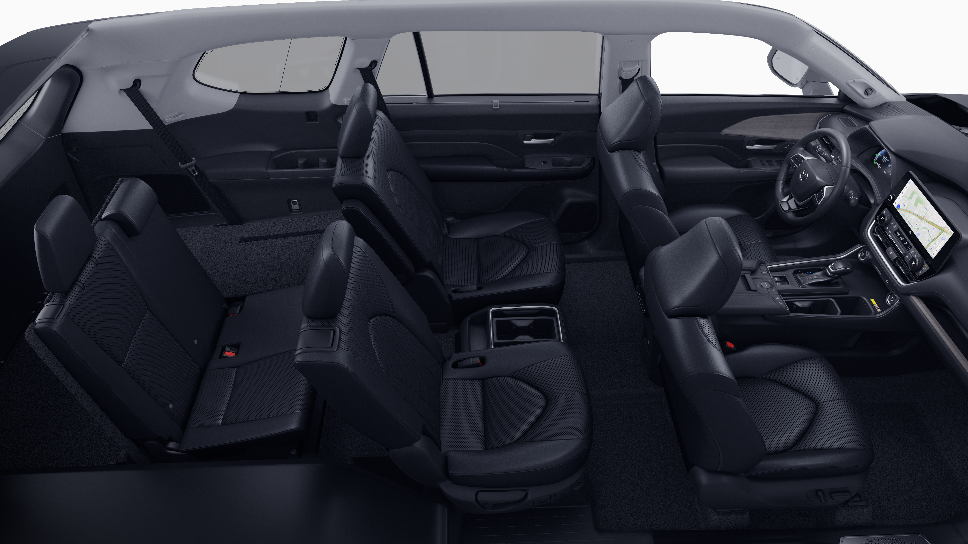 - 7-passenger seating with second-row fold-down captain's chairs and fold-down inboard armrests, adjustable headrests and two cup holders mounted on the floor; and 60/40 split, fold-down third-row seats with sliding headrests and recline function