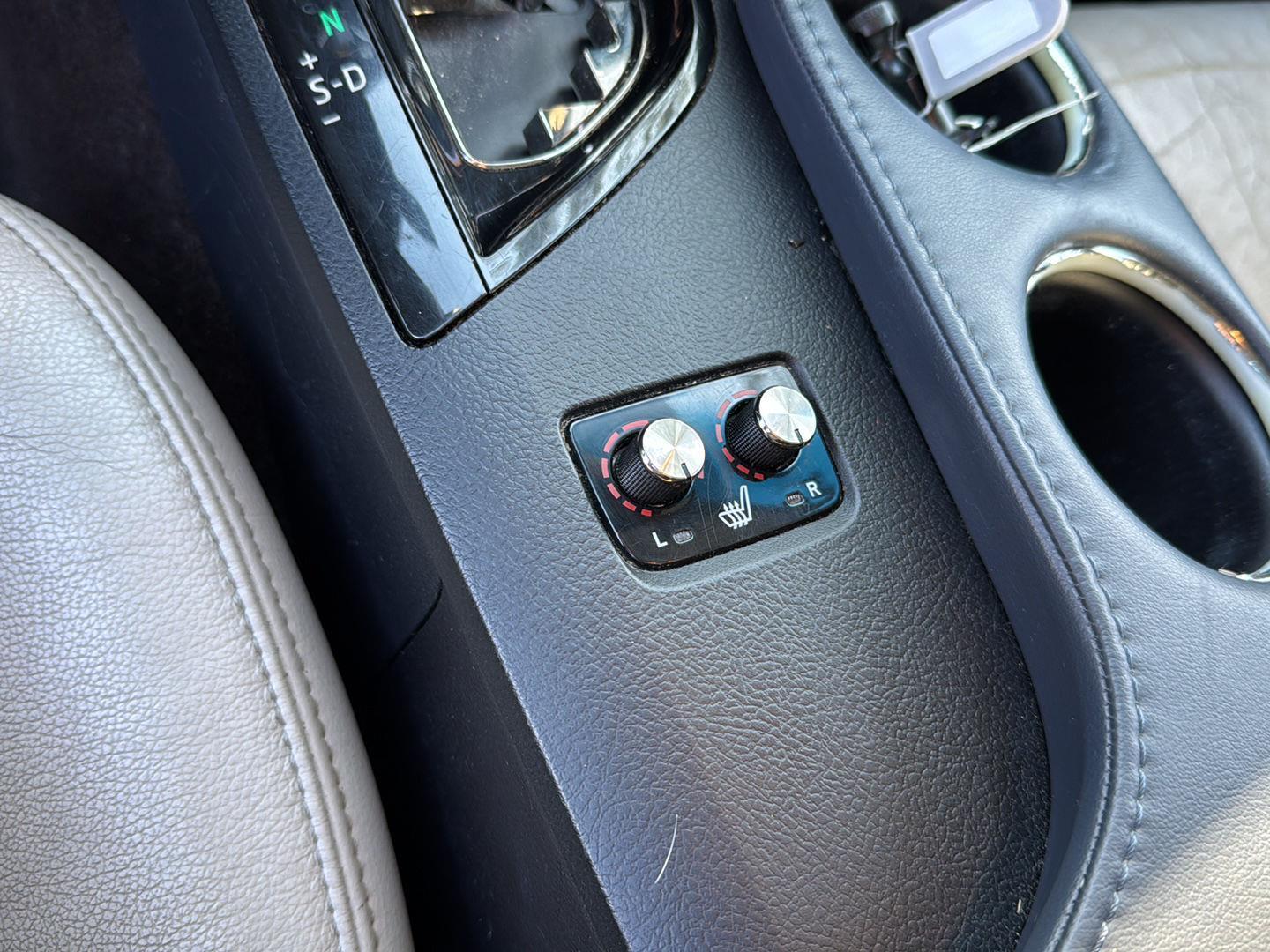- Leather and simulated wood gear shifter material