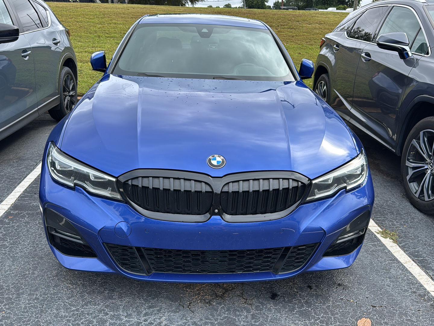 This 2019 BMW 330i is Portimao Blue Metallic with a Mocha Vernasca Leather Interior. It comes very well equipped with a Premium Package (Heated Steering Wheel, Heated Front Seats, Head-Up Display), Active Blind Spot Detection, Power Front Seats, Live Cockpit Pro (incl. Navi), Active Driving Assistant, M Sport Package (Variable Sport Steering, Comfort Access Keyless Entry, Lumbar Support, SiriusXM Radio, SensaTec Dashboard) M Sport Package (19 M Dual-Spoke Bi-Color Alloy Wheels, Aluminum Tetragon Trim, LED Foglights, Adaptive M Suspension, M Steering Wheel, Aerodynamic Kit, Shadowline Exterior Trim, Anthracite Headliner), Track Handling Package (M Sport Brakes with Blue Calipers, M Sport Differential), Parking Assistance Package (Active Park Distance Control, Parking Assistant Plus, Rear View Camera, Parking View with 3D View), Navigation System, WiFi Hotspot (by Subscr.), Wireless Charging, ConnectedDrive Services, Connected Package Pro, Active Protection, Active Guard, Apple CarPlay Compatibility, SPORT Automatic Transmission, Power Front Seats, Harman Kardon Surround Sound System, CD Player Prep, Auto-Dimming Rearview Mirror, Auto-Dimming Mirrors, Universal Garage Door Opener, Tire Pressure Monitor, Run Flat Tires, Dual Zone Climate Control, LED Headlights w/ Cornering, Storage Package, Alarm System, Park Distance Control, Power Tailgate, Remote Engine Start, and Daytime Driving Lights. Please ask for Internet Sales to receive this special internet offer!�