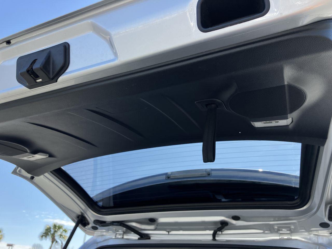 - The vehicle is equipped with a camera that displays an image of the area behind the vehicle on an interior display.