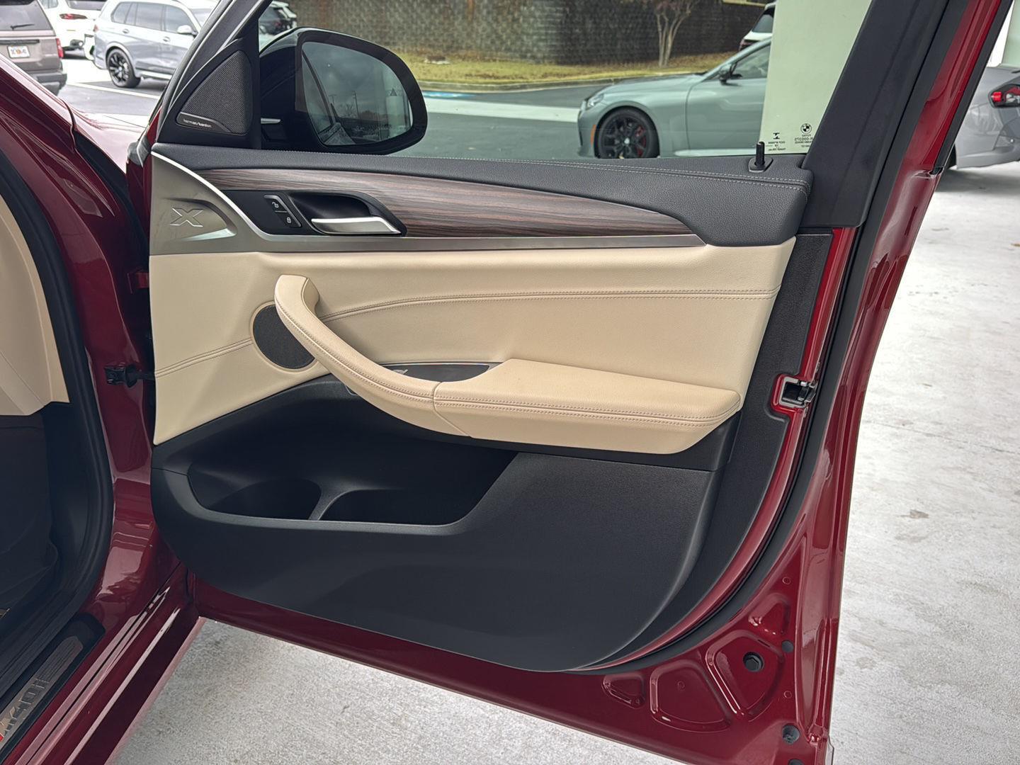 This 2020 BMW X4 is Flamenco Red Metallic with a Canberra Beige Vernasca Leather Interior.�It comes very well equipped with an Executive Package (Heated Steering Wheel, Comfort Access Keyless Entry, Lumbar Support, Heated Front and Rear Seats, Ambient Lighting, Adaptive Full LED Lights, Automatic High Beams, Parking Assistant Plus, Head-Up Display, Wireless Charging, Gesture Control, Enhanced USAB & Bluetooth, Active Park Distance Control, Parking View with 3D View), Driving Assistance Package (Active Blind Spot Detection, Lane Departure Warning), Driving Assistance Plus (ACC Stop&Go + Active Dive Assist), 20 M Dual-Spoke Alloy Wheels, Fineline Cove Matte Wood Trim, Adaptive M Suspension, M Sport Differential, Navigation System, Live Cockpit Pro (incl. Navi), Connected Package Pro, Active Driving Assistant, Galvanic Controls, Power Front Seats, Lumbar Support, Dual Zone Climate Control, Harman-Kardon Surround Sound System, SiriusXM Satellite Radio, Auto Dimming Mirrors, Universal Garage Door Opener, Ambient Lighting, Storage Package, Alarm System, Storage Package, Floor Mats, Tire Pressure Monitor, Active Protection, Privacy Glass, Rearview Camera, Decoding for No-Dazzle High Beams, Increased Top Speed Limiter, Active Protection, Apple CarPlay Compatibility, and Daytime Driving Lights. Please ask for Internet Sales to receive this special internet offer!