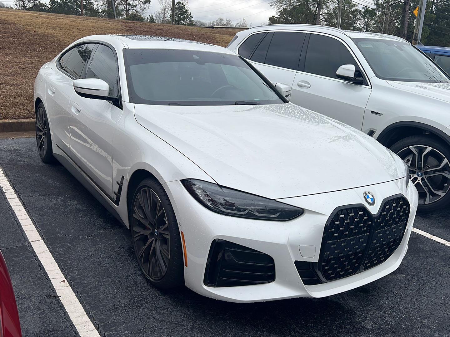 This 2022 BMW 430i GC is Mineral White Metallic with Black Perforated Interior. This BMW 430i GC comes very well equipped with a Premium Package 2 (Heated Steering Wheel, Ambient Lighting, Gesture Control, Lumbar Support, Heated Front Seats), M Sport Package (Variable Sport Steering, M Sport Package, M Sport Suspension, M Steering Wheel, Aerodynamic Kit, Rear Spoiler), Shadowline Package (M Shadowline Lights, Extended Shadowline Trim), Parking Assistance Package (Parking Assistant Plus, Active Park Distance Control, Rear View Camera, Parking View w/ 3D View), 8-Speed Sport Automatic Transmission, 20 Individual Multi-Spoke BiColor Alloy Wheels, Power Front Seats, Comfort Access Keyless Entry, Hi-Fi Sound System, Apple CarPlay/Android Auto Compatibility, Live CockPit Pro (incl. Navi), Enhanced B/T and Smartphone Integration, SiriusXM Radio, Connected Package Pro Limited Term, ConnectedDrive Services, Auto-Dimming Rearview Mirror, Auto-Dimming Mirrors, Decoding for No-Dazzle High Beam Assistance, ICON Adaptive LED Lights w/ Laser Lights, Universal Garage Door Opener, Tire Pressure Monitor, Alarm System, Storage Package, Dual Zone Auto Climate Control, Increased Top Speed Limiter, Shadowline Exterior Trim, Active Driving Assistant, Aluminum Trim with Mesh EffectBlack Floor Liners, Wheel Locks, Mobility Kit, Remote Engine Start, Runflat Tires, Power Front Seats, and Daytime Driving Lights. This BMW 430i GC comes with a BMW Certified/Unlimited Mileage Warranty with coverage until 03/12/2027. Please ask for Internet Sales to receive this special internet offer!