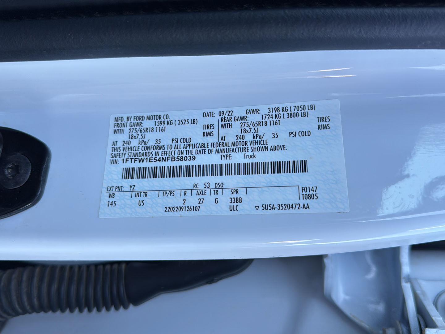 ENGINE: 5.0L V8, OXFORD WHITE