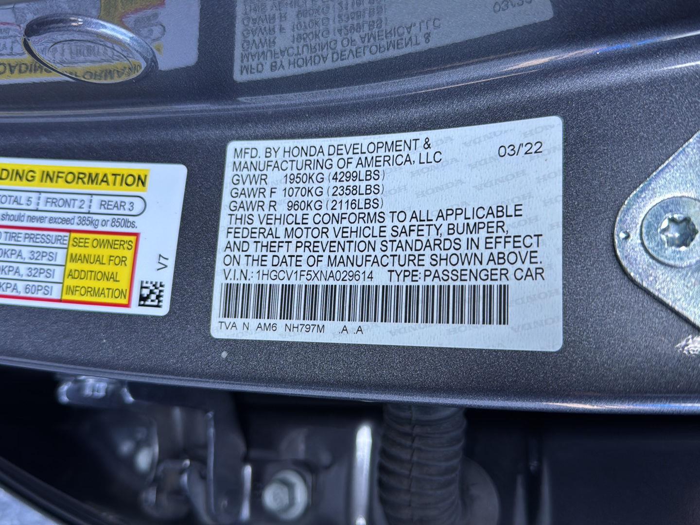 - 1.5L I-4 gasoline direct injection, DOHC, i-VTEC variable valve control, intercooled turbo, regular unleaded, engine with 192HP