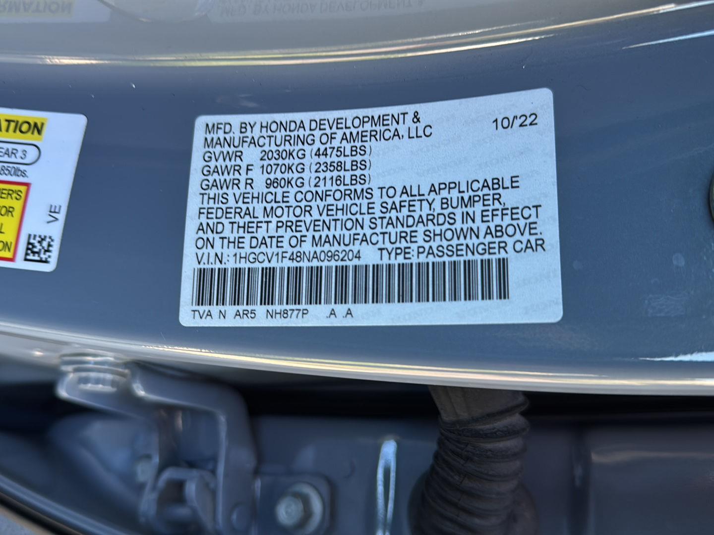 - 1.5L I-4 gasoline direct injection, DOHC, i-VTEC variable valve control, intercooled turbo, regular unleaded, engine with 192HP