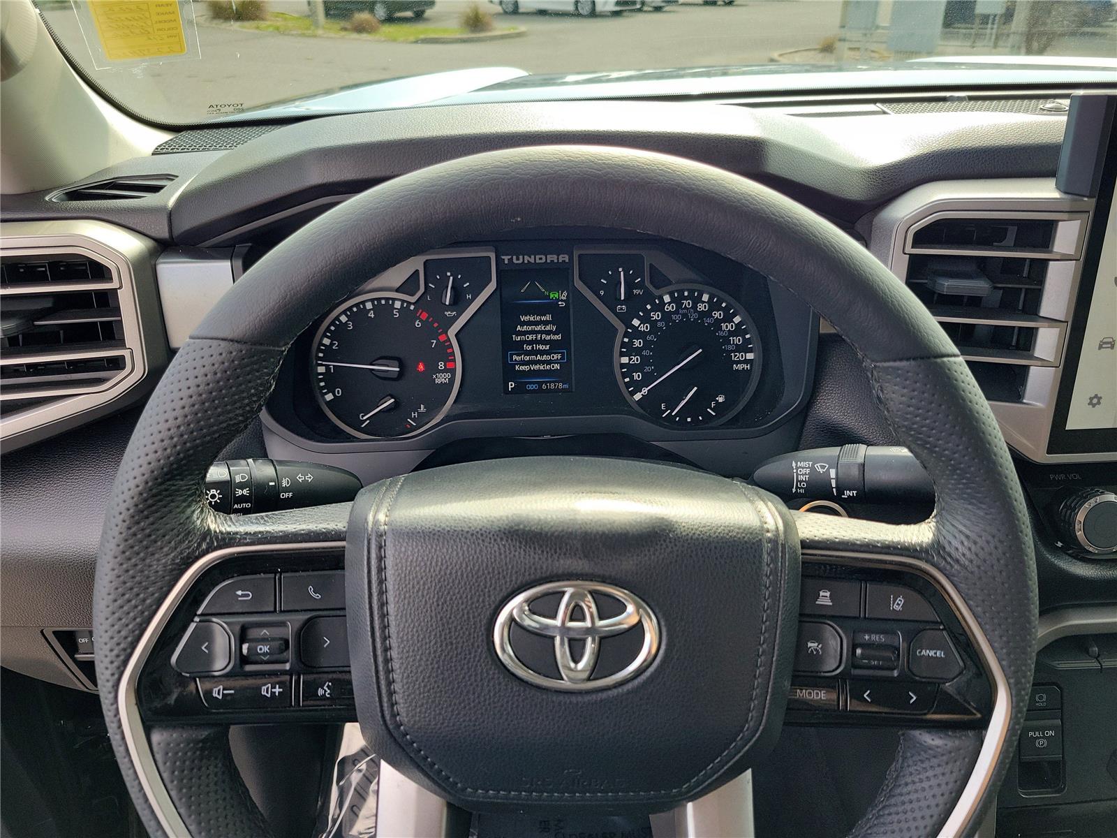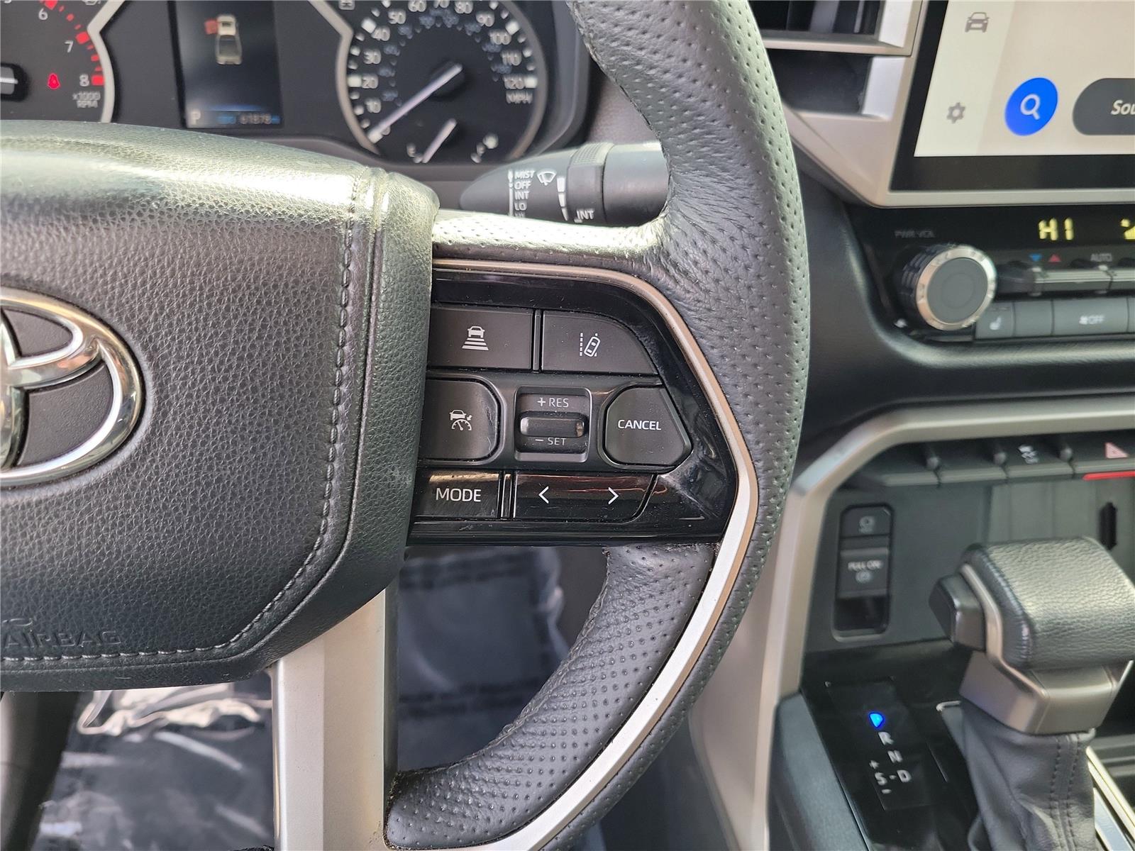 - Includes 14-in. touchscreen, 9 speakers, wireless Apple CarPlay and Android Auto, Amazon Alexa, SiriusXM satellite radio service with 3-month trial subscription, Toyota Connected Services (includes Safety Connect with 1-year trial, Service Connect with 3-year trial, Drive Connect with 1-year trial, Remote Connect with 1-year trial, and Wi-Fi Connect with up to 3 GB within 1-month trial), 400W/120V rear power outlet, 400W/120V bed-mounted power outlet, and LED bed lights.