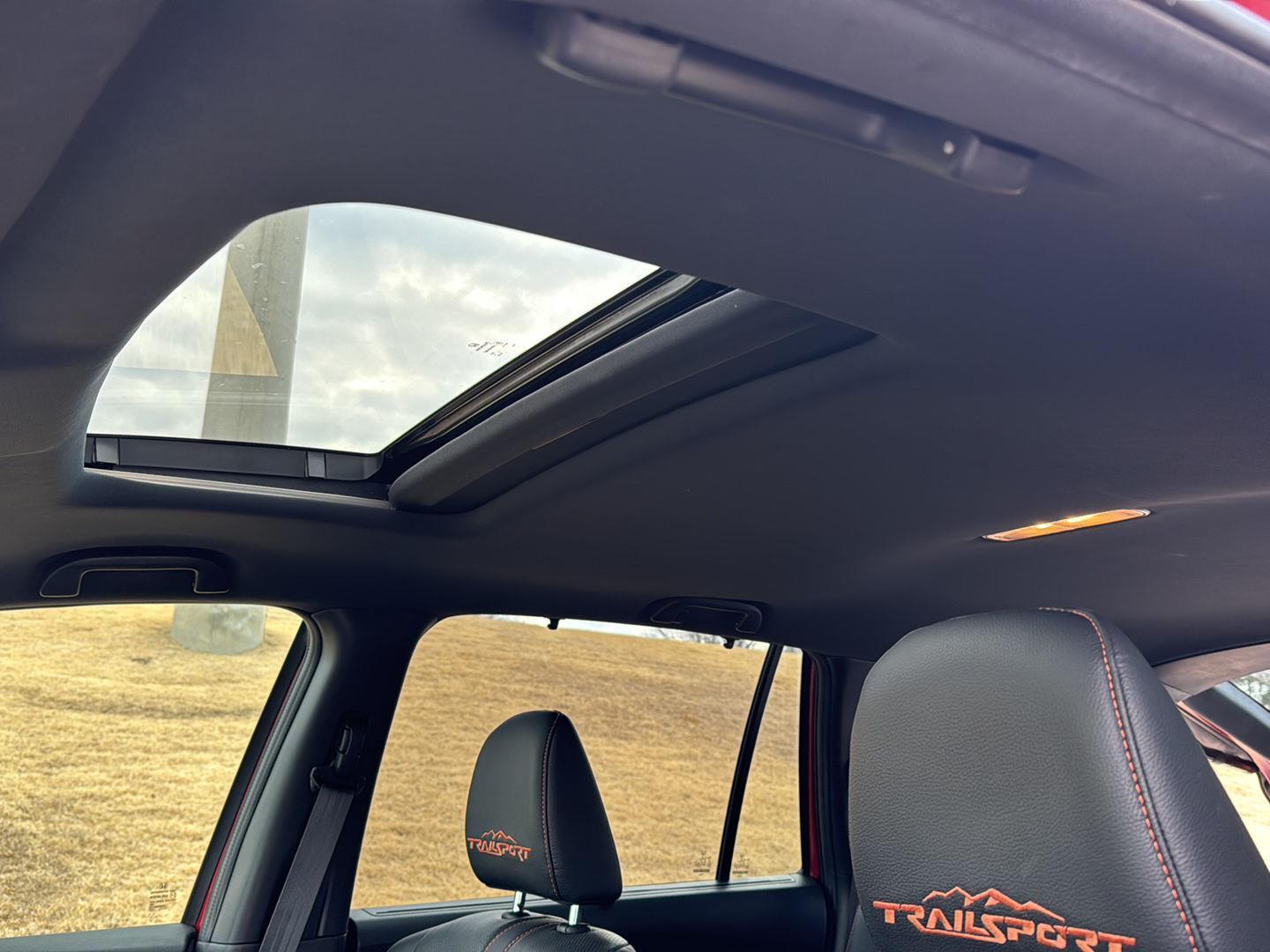 First-row sliding and tilting glass moonroof with express open/close activation sunshade for open-air driving