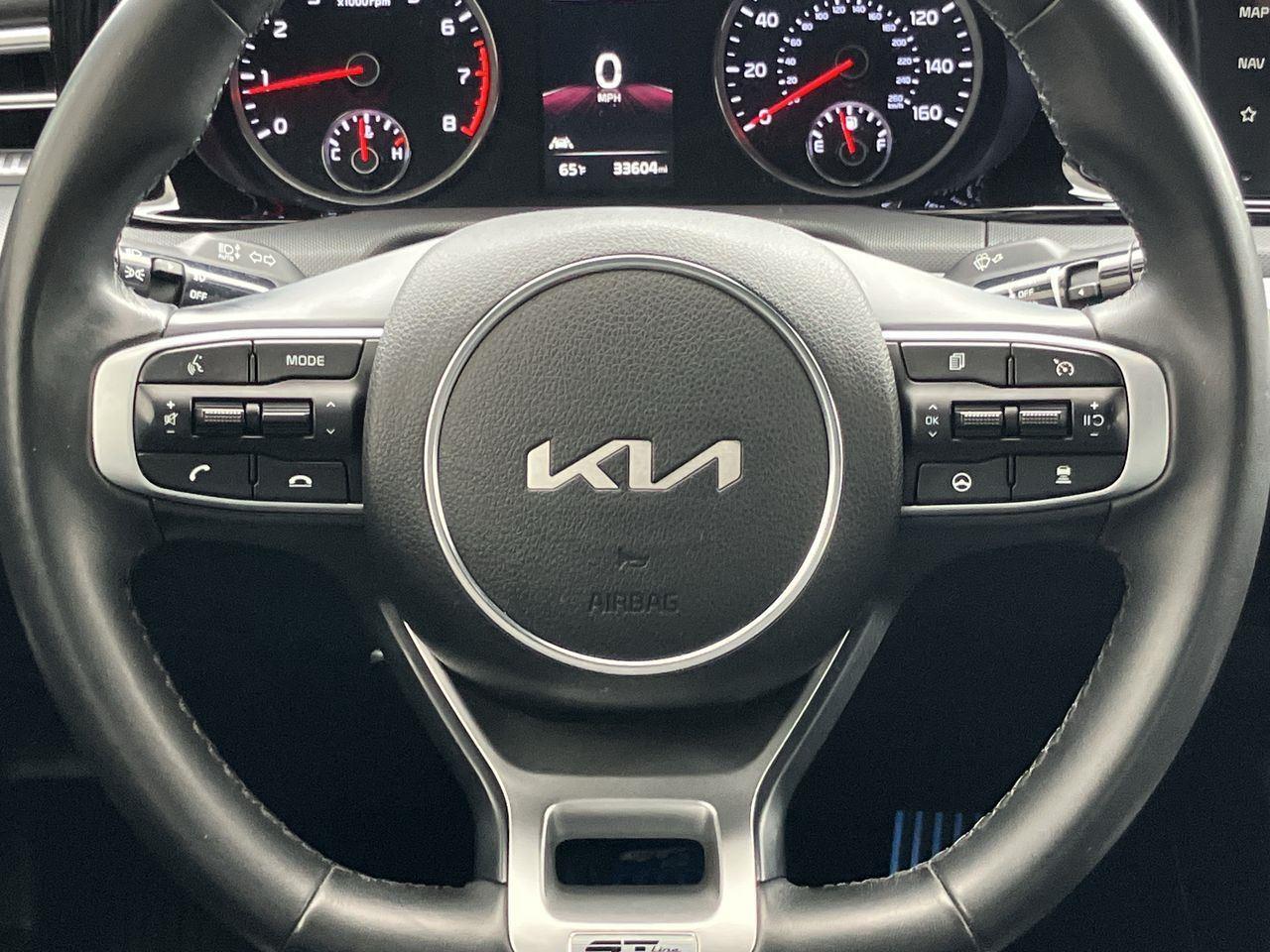 A very well-equipped sedan, which is sure to impress, not only with its looks, but power, handling and modern features. Thank you for your interest in our 2023 Kia K5 GT-Line acquired with 33,603 miles. This vehicle is still covered under the remaining balance of the Factory 5 Year/60,000-mile Bumper-to-Bumper Warranty!