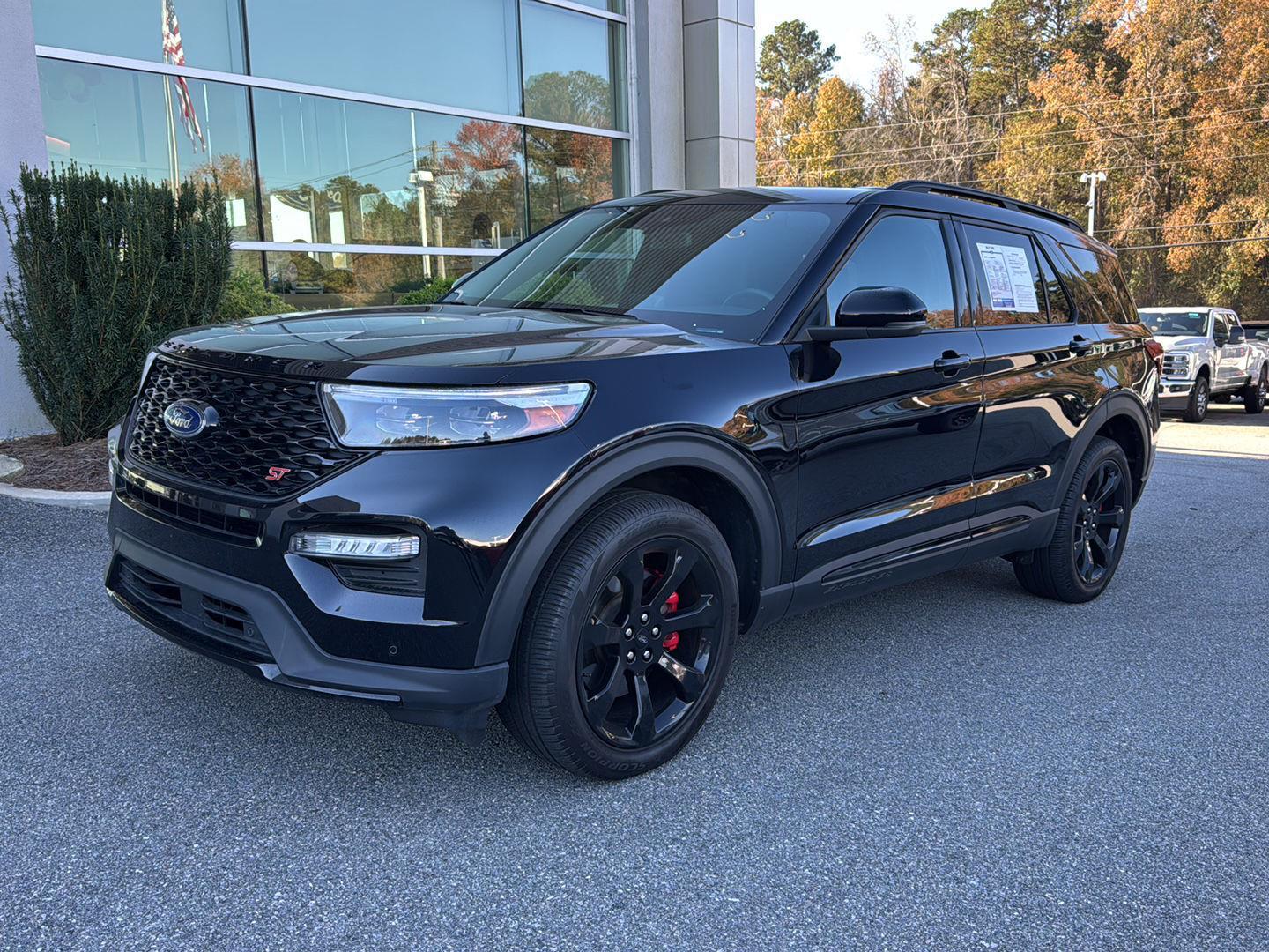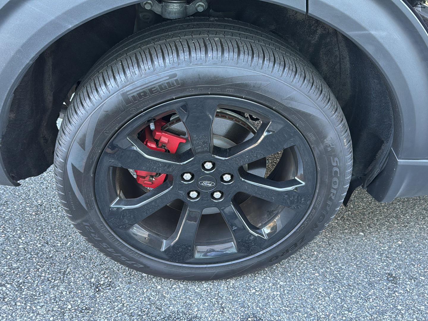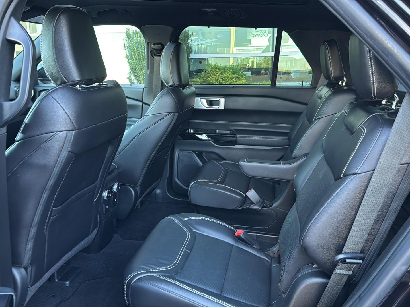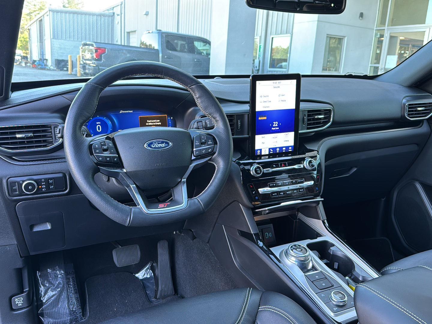 - Includes vehicle with standard equipment, 110V/150W AC power outlet in rear side of center console, 360-degree camera with split view, ambient lighting, auto-dimming rearview mirror, B&O sound system by Bang & Olufsen with 12 speakers including subwoofer, forward sensing system, HD radio, driver's seat memory, power adjustable and power-folding heated sideview mirrors with Autofold, LED turn signal indicators, ST projection lamps, driver's side auto-dimming, driver/passenger side memory, gloss black caps, rain-sensing wipers, reverse brake assist, front heated and ventilated seats, leather seating surfaces with micro-perforated inserts and City Silver accent stitching with ST logo, second row heated seats, second row E-Z entry, third row PowerFold, power tilt/telescoping steering column, universal garage door opener, wireless charging pad, Ford Co-Pilot360 Assist+, adaptive cruise control with stop-and-go, lane centering, evasive steering assist, voice-activated touchscreen navigation system with pinch-to-zoom capability, SiriusXM Traffic and Travel Link, speed sign recognition, 21 in. aluminum wheels with 275/45R21 all-season tires, and performance brakes with red brake calipers.