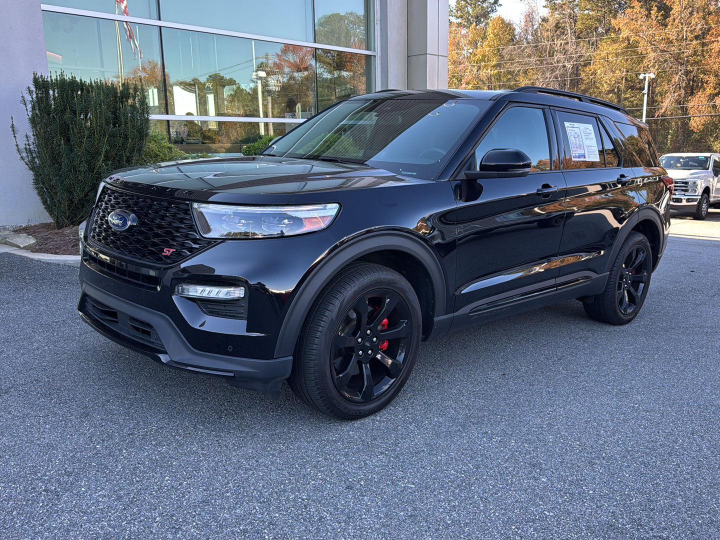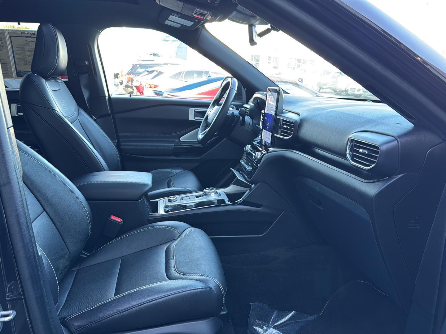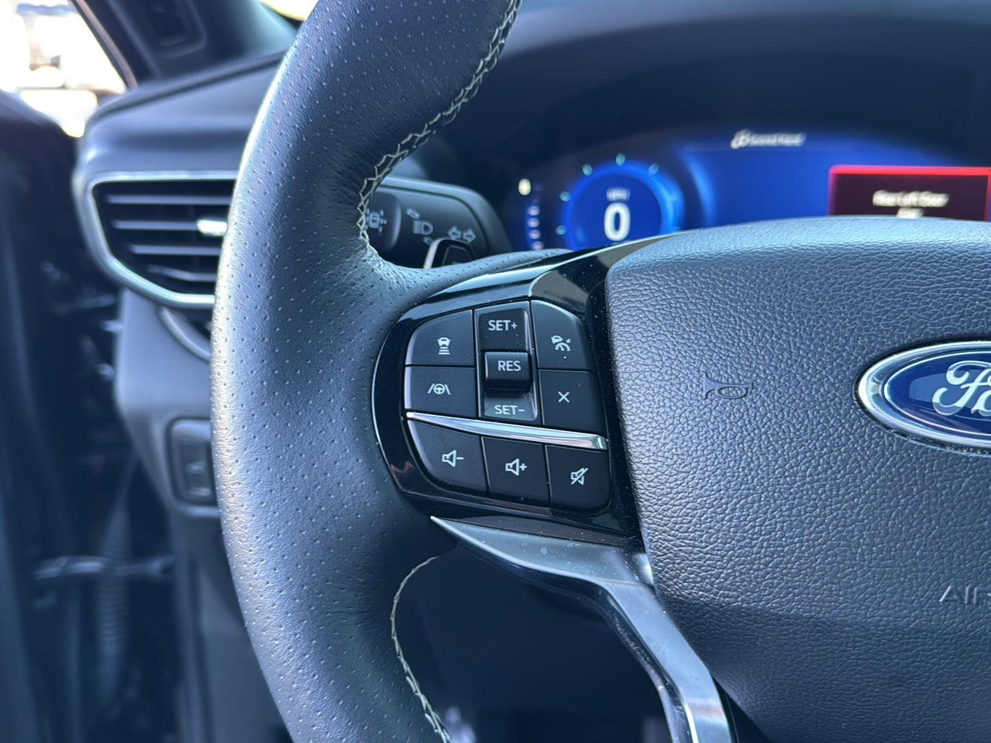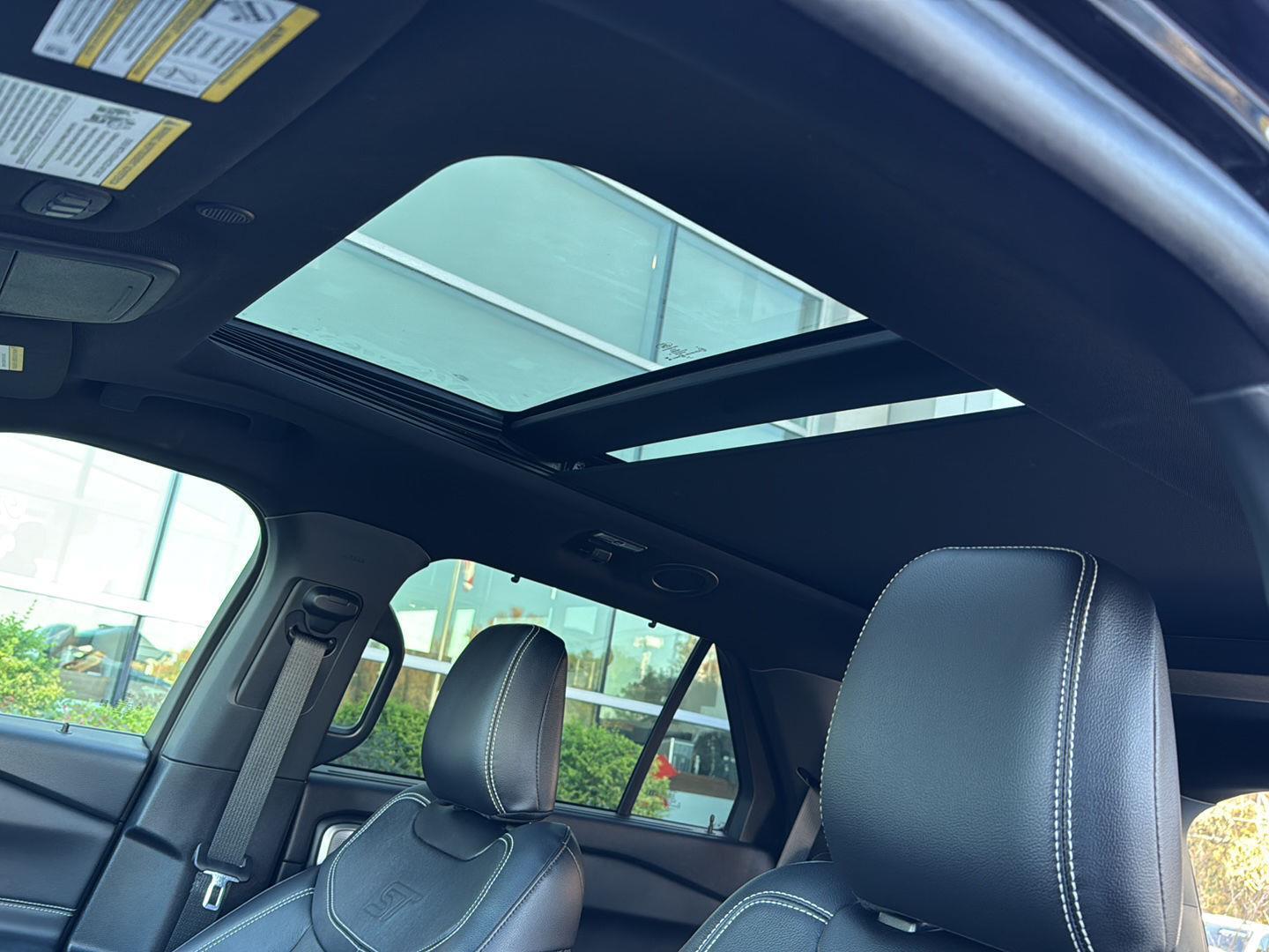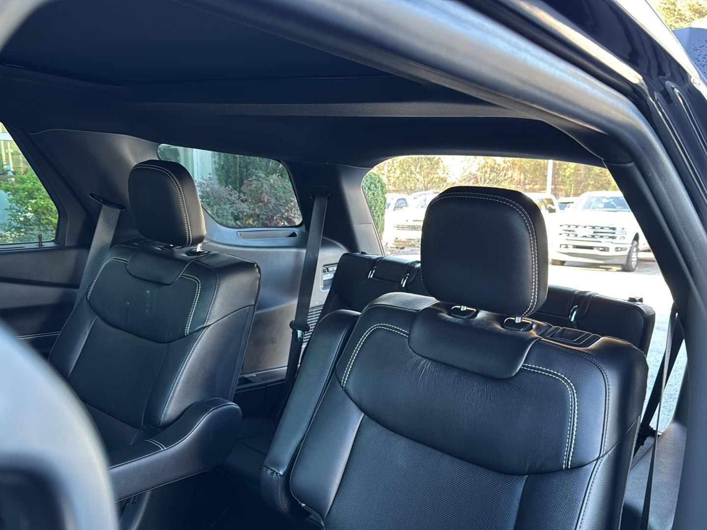 - Includes vehicle with standard equipment, 110V/150W AC power outlet in rear side of center console, 360-degree camera with split view, ambient lighting, auto-dimming rearview mirror, B&O sound system by Bang & Olufsen with 12 speakers including subwoofer, forward sensing system, HD radio, driver's seat memory, power adjustable and power-folding heated sideview mirrors with Autofold, LED turn signal indicators, ST projection lamps, driver's side auto-dimming, driver/passenger side memory, gloss black caps, rain-sensing wipers, reverse brake assist, front heated and ventilated seats, leather seating surfaces with micro-perforated inserts and City Silver accent stitching with ST logo, second row heated seats, second row E-Z entry, third row PowerFold, power tilt/telescoping steering column, universal garage door opener, wireless charging pad, Ford Co-Pilot360 Assist+, adaptive cruise control with stop-and-go, lane centering, evasive steering assist, voice-activated touchscreen navigation system with pinch-to-zoom capability, SiriusXM Traffic and Travel Link, speed sign recognition, 21 in. aluminum wheels with 275/45R21 all-season tires, and performance brakes with red brake calipers.