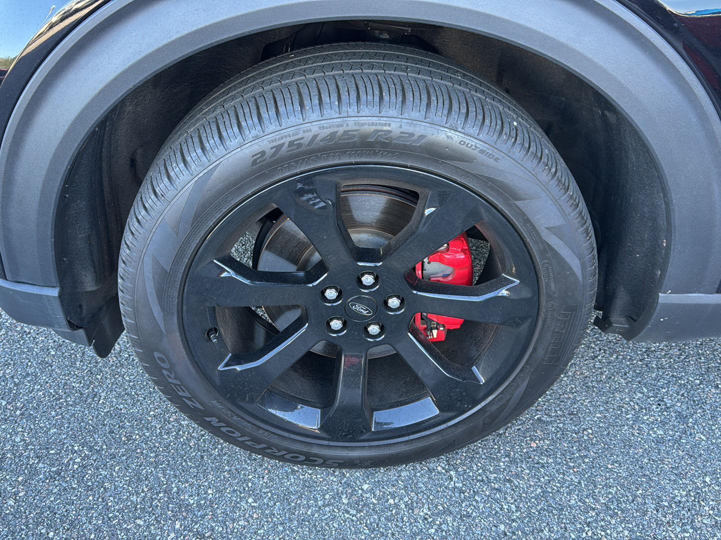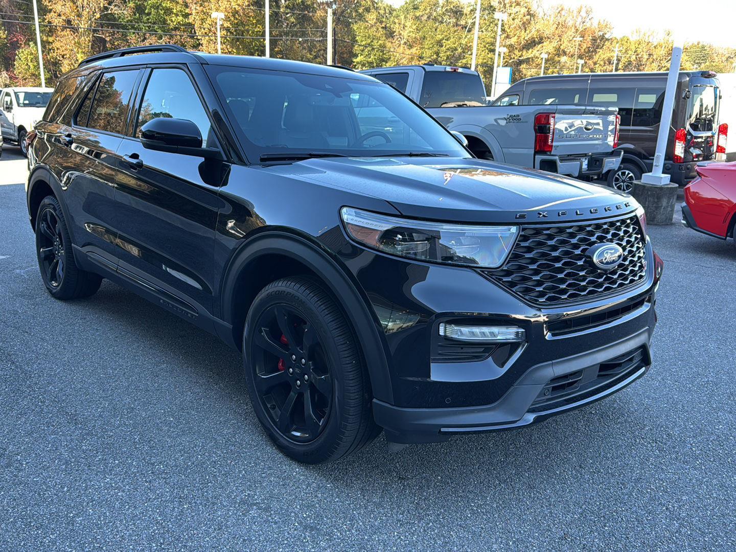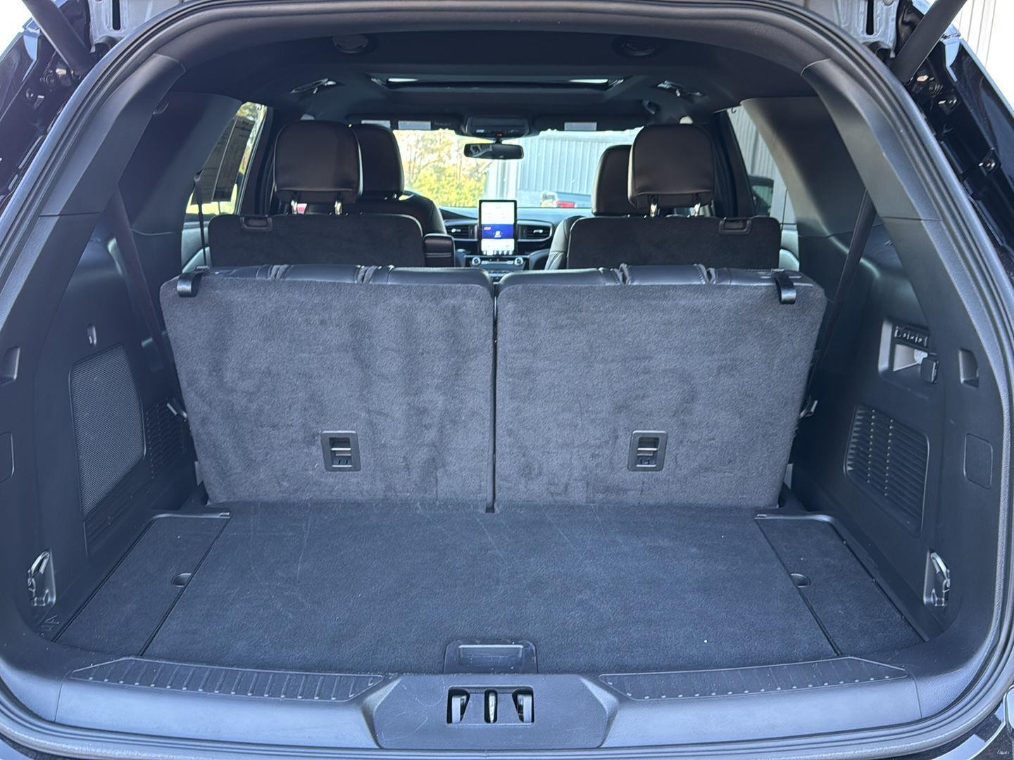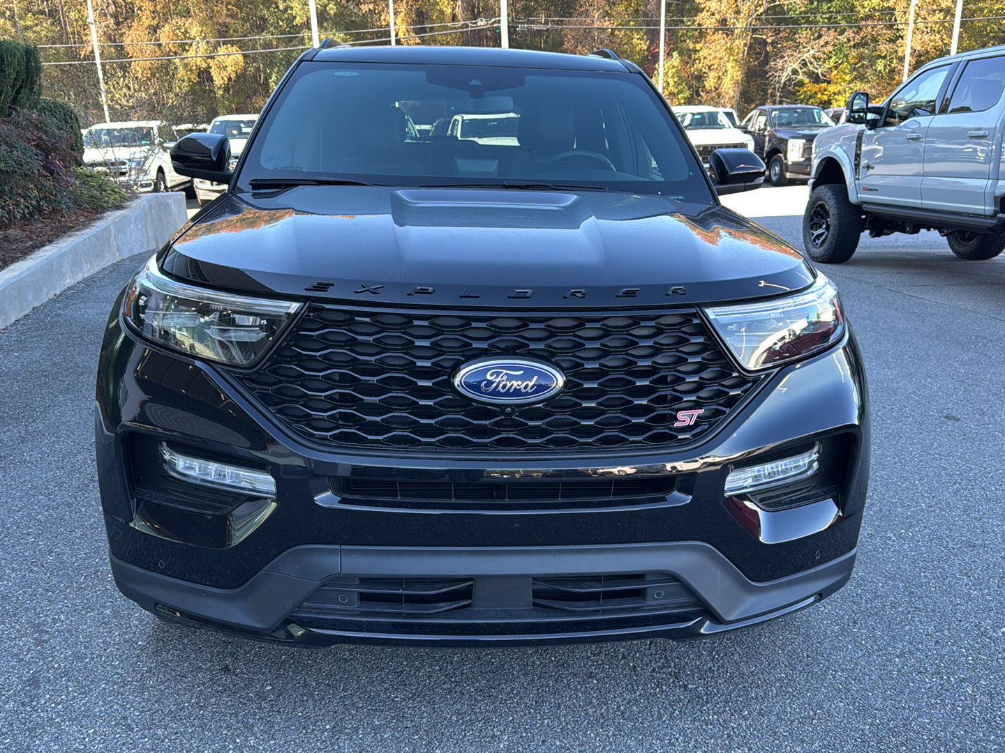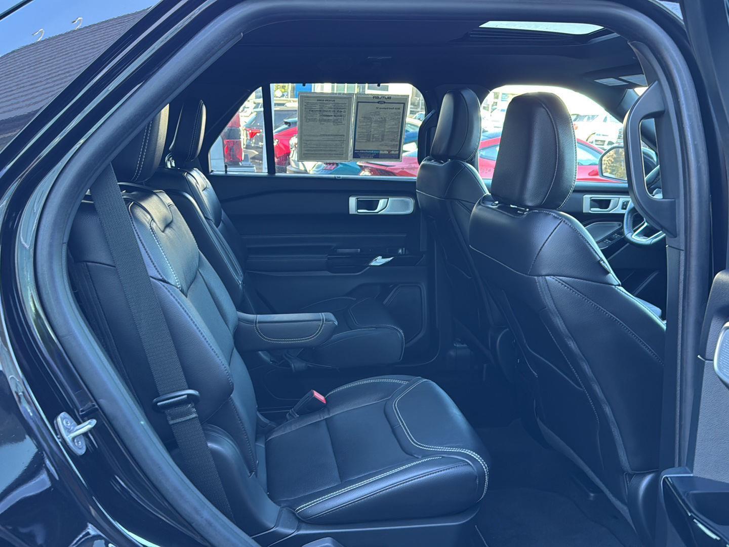 - Includes vehicle with standard equipment, 110V/150W AC power outlet in rear side of center console, 360-degree camera with split view, ambient lighting, auto-dimming rearview mirror, B&O sound system by Bang & Olufsen with 12 speakers including subwoofer, forward sensing system, HD radio, driver's seat memory, power adjustable and power-folding heated sideview mirrors with Autofold, LED turn signal indicators, ST projection lamps, driver's side auto-dimming, driver/passenger side memory, gloss black caps, rain-sensing wipers, reverse brake assist, front heated and ventilated seats, leather seating surfaces with micro-perforated inserts and City Silver accent stitching with ST logo, second row heated seats, second row E-Z entry, third row PowerFold, power tilt/telescoping steering column, universal garage door opener, wireless charging pad, Ford Co-Pilot360 Assist+, adaptive cruise control with stop-and-go, lane centering, evasive steering assist, voice-activated touchscreen navigation system with pinch-to-zoom capability, SiriusXM Traffic and Travel Link, speed sign recognition, 21 in. aluminum wheels with 275/45R21 all-season tires, and performance brakes with red brake calipers.