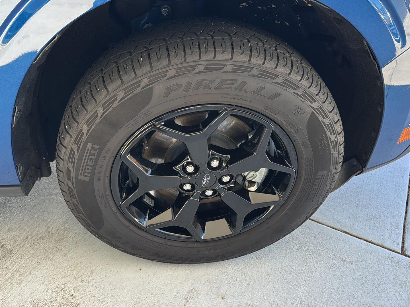 - Black front bumper rub strip