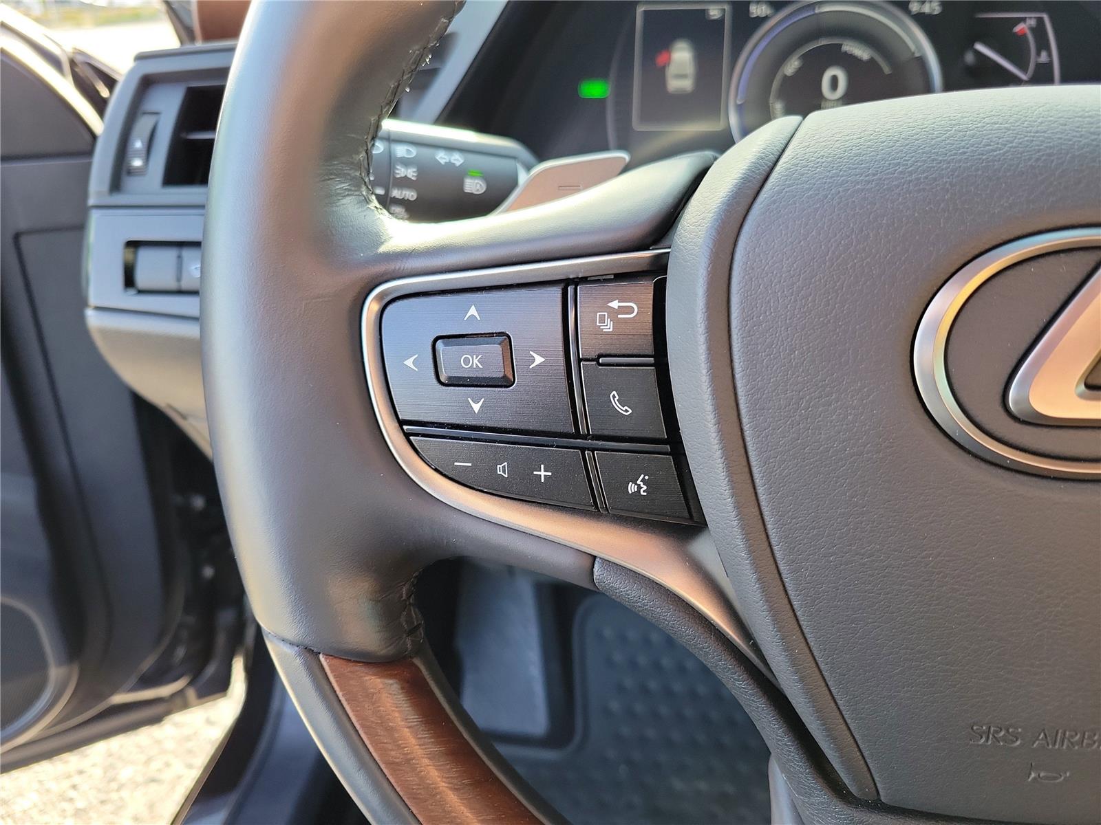 - Leather and genuine wood steering wheel