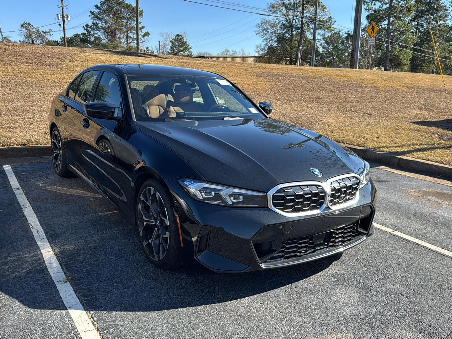 This 2025 BMW M340i is Black Sapphire Metallic with a Cognac Perforated Interior. It comes very well equipped with a Parking Assistance Package (Parking Assistance Plus, Active Park Distance Control, Rearview Camera, Parking View w/ 3D View), Premium Package (Power Tailgate, Harman-Kardon Surround Sound System, BMW Curved Display with HUD), 19 M Dual-Spoke Bi-Color Alloy Wheels, Driving Assistance Package (Active Cruise Control), Heated Steering Wheel, Heated Front Seats, Comfort Access Keyless Entry, Wireless Device Charging, Anthracite Aluminum Rhombicle Trim, Power Front Seats, Lumbar Support, Universal Garage Door Opener, Ambient Lighting, Connected Package Pro, Apple CarPlay and Android Auto Compatibility, Navigation System, Personal eSIM 5G, ConnectedDrive Services, Active Protection, SiriusXM Radio, Power Front Seats, Auto-Dimming Rearview Mirror, Auto-Dimming Mirrors, Tire Pressure Monitor, Dual Zone Climate Control, Alarm System, Apple CarPlay Compatibility, Active Driving Assistant, Remote Engine Start, Runflat Tires, Frontal Collision Warning w/ City Collision Mitigation, Active Blind Spot Detection, Lane Departure Warning, and Daytime Driving Lights. This BMW M340i comes with the balance of a BMW Limited Mileage Warranty with coverage until 06/10/2029 or 50,000 miles! Please ask for Internet Sales to receive this special internet offer!