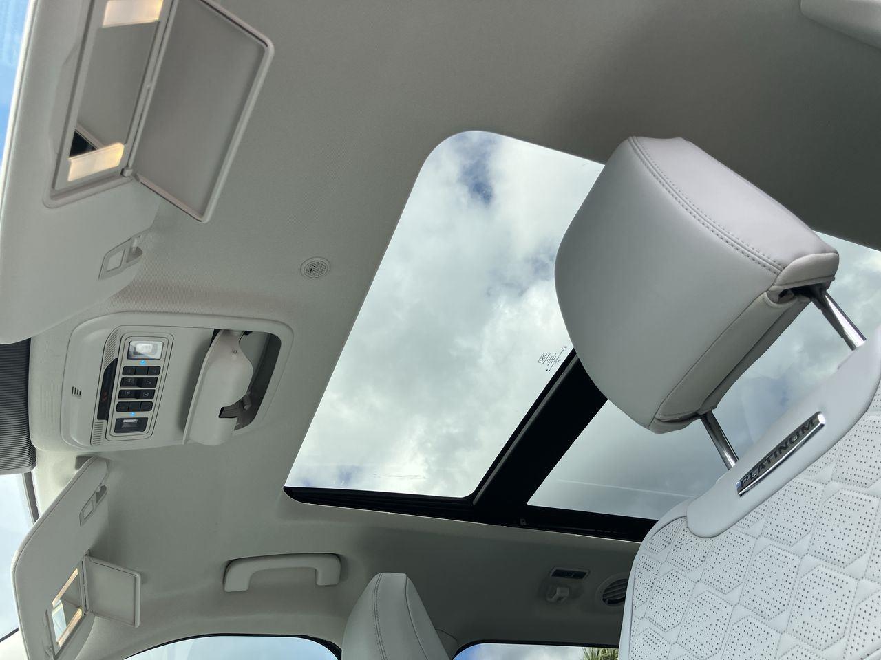 This is the Platinum trim, the most luxurious of all the trims offered in 2025. If pomp and circumstance is your thing, be sure to check out these features: 20-inch wheels, Twin-panel sunroof, Adaptive headlights (swivel as you turn the steering wheel for better illumination in curves), Special exterior and interior trim details, Leather upholstery with synthetic suede inserts, Heated second-row captain's chairs & 14-speaker B&O sound system.