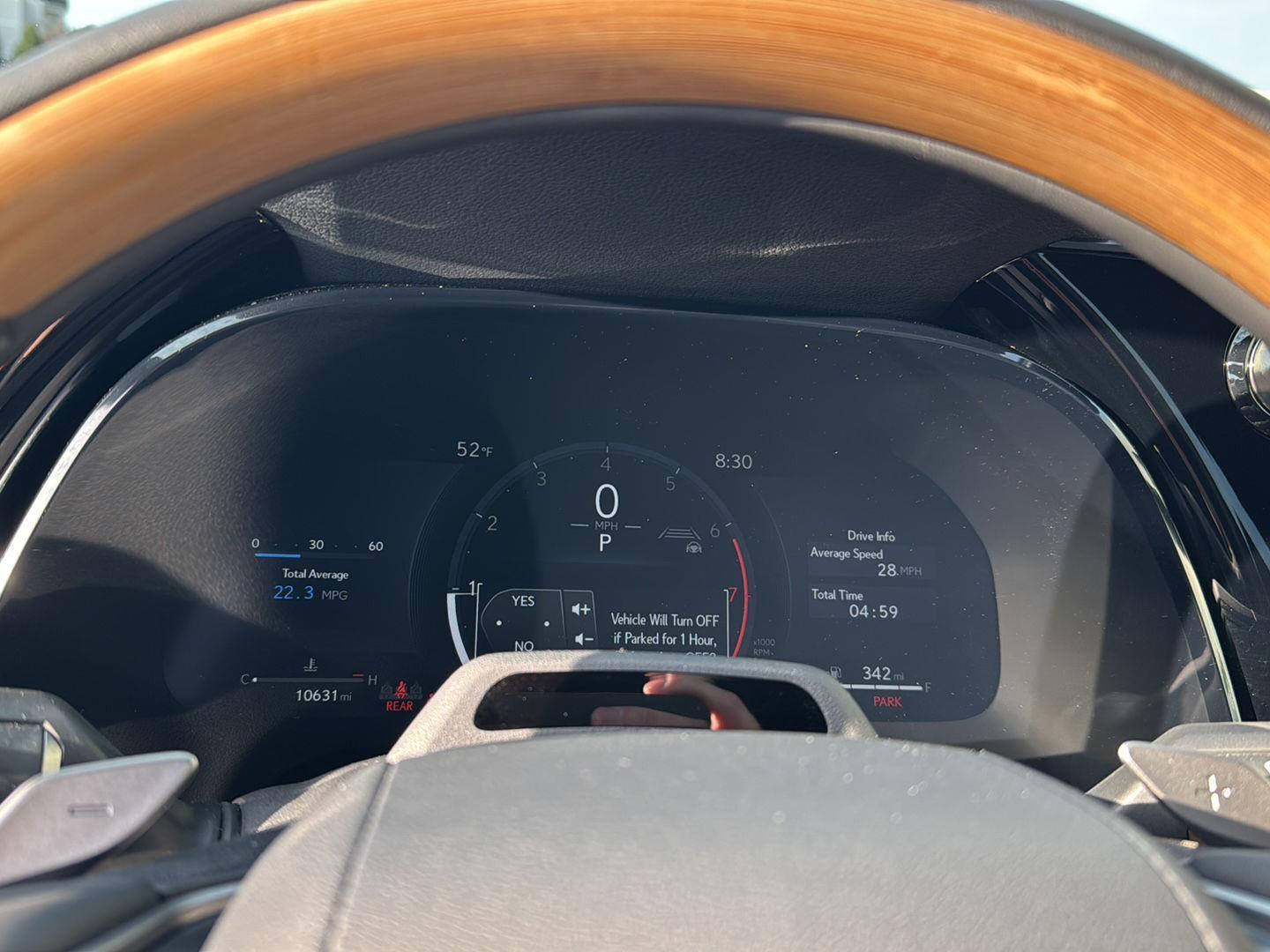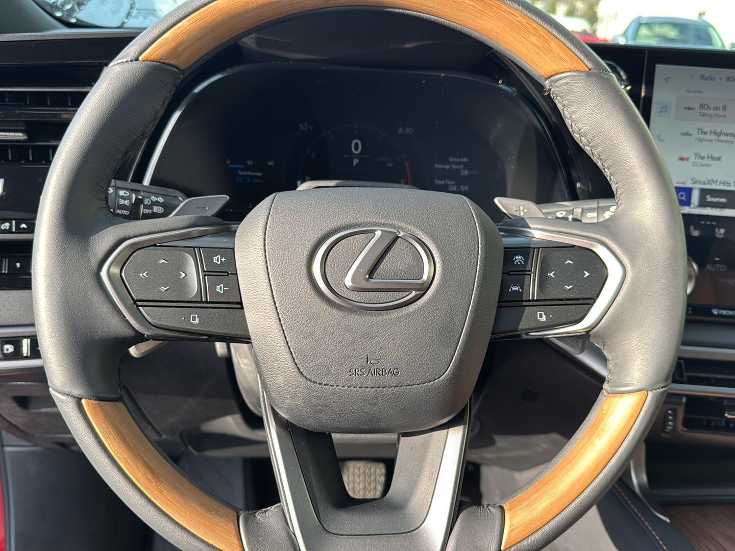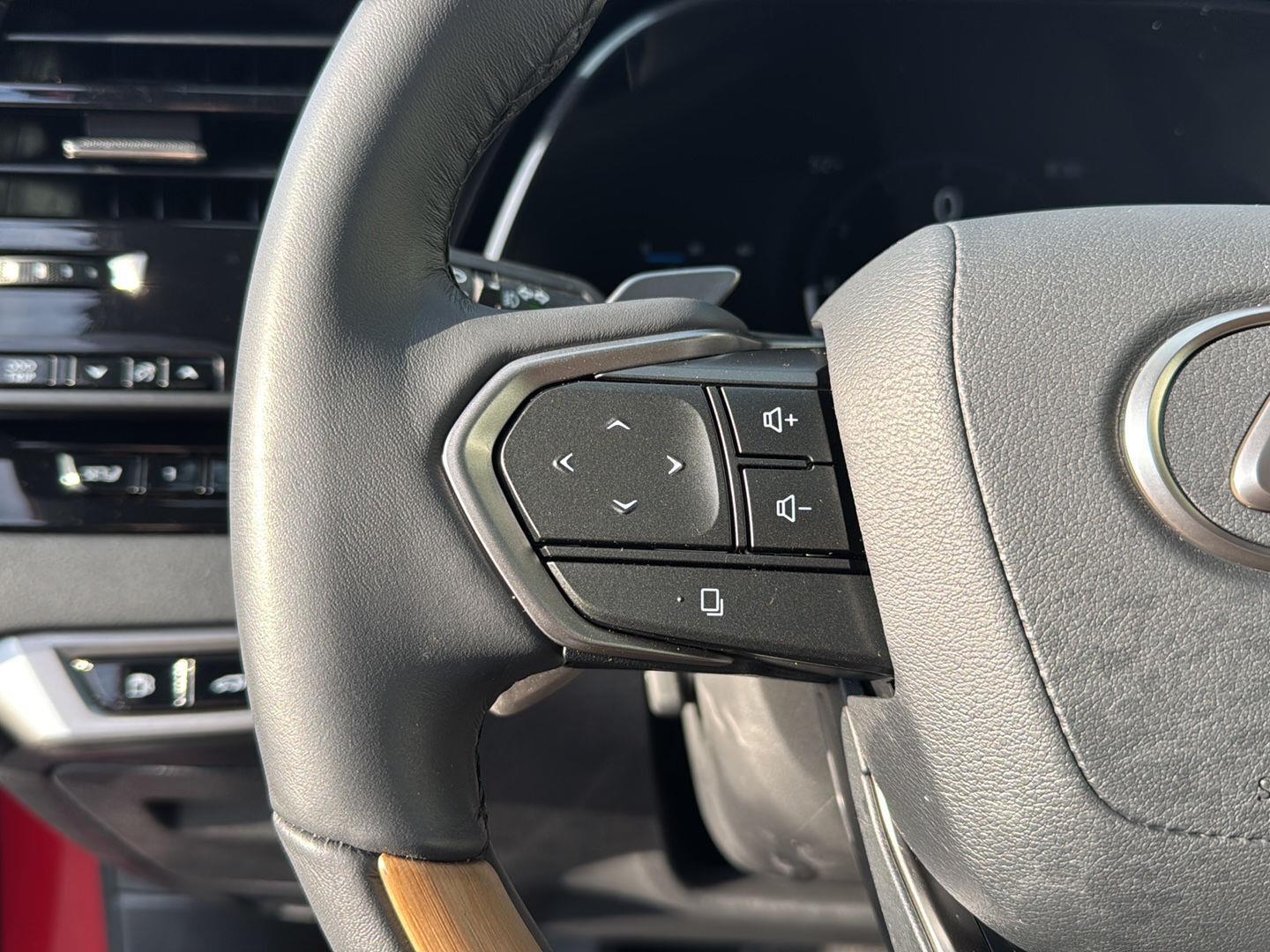 - Leather and genuine wood steering wheel